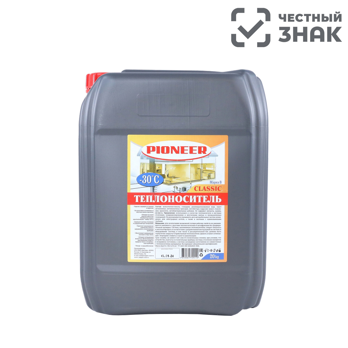 Антифриз теплоноситель PIONEER Classic -30 (Марка К) - предназначен для эксплуатации внутри замкнутых систем отопления жилых и производственных помещений в качестве жидкости для передачи тепла от источника нагрева к отопительным приборам.